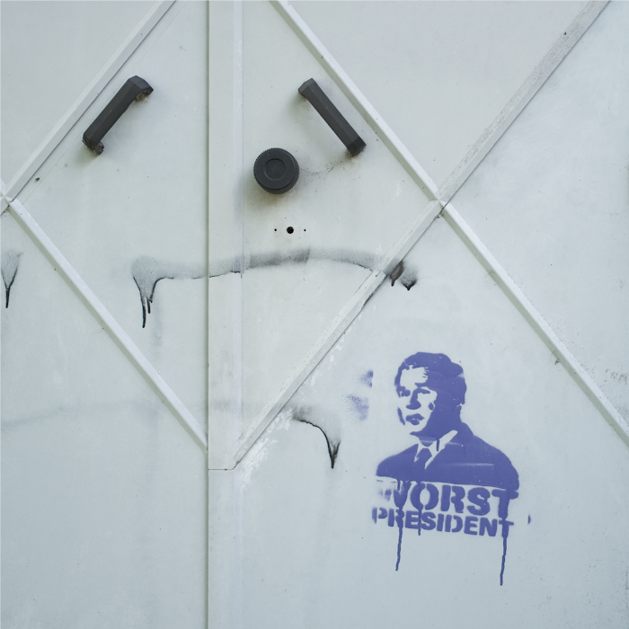 Ah! Interessante e buontempone l'autore che ha sfruttato le maniglie e la serratura per fornirci una faccia alquanto perplessa!