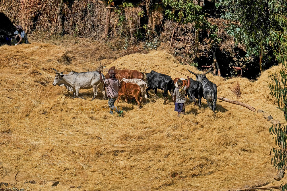 Qui mi riporti alla mia infanzia quando nei paesi contadini intorno a Cagliari si usava il giogo dei buoi per la prima lavorazione del grano.
