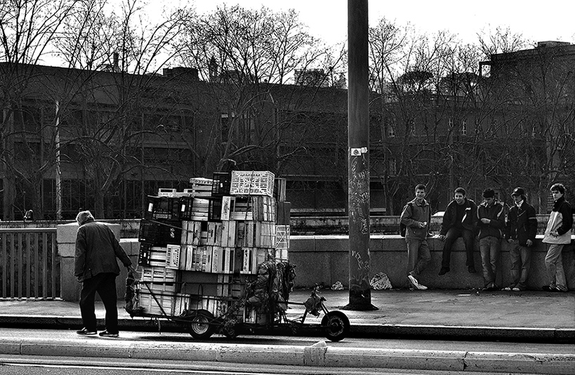 Tornando alla foto a me piace parecchio..nonostante la veda un pò impastata nel contrasto, ma il messaggio è forte.. i ragazzi che guardano il tipo e sorridono... magari era un caso, ridevano per cose loro e intanto guardavano il carretto...fatto sta che mi piace..
