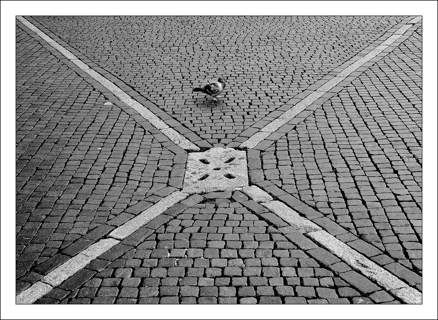 Non rinunci mai a guardare in ogni direzione, come si conviene ad un ottimo Fotografo sempre attento ad osservare. E la geometria è parte dello scanner del tuo occhio. In basso c è un intreccio di possibilità. X diversa ,non marinara,formata dalle piramidi tronche che hai scovato componendo ancor prima della post. Dati di scatto che indicano mano ferma, nitidezza extra è il giusto mosso ‘alare’.