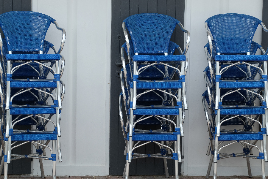Non so se sarebbe stato possibile, avrei evitato di tagliare le due pile di sedie sul bordo del frame e avrei spostato la pila di sinistra verso destra. n uno scatto simile la simmetria è d'obbligo Mia modestissima opinione, naturalmente.
