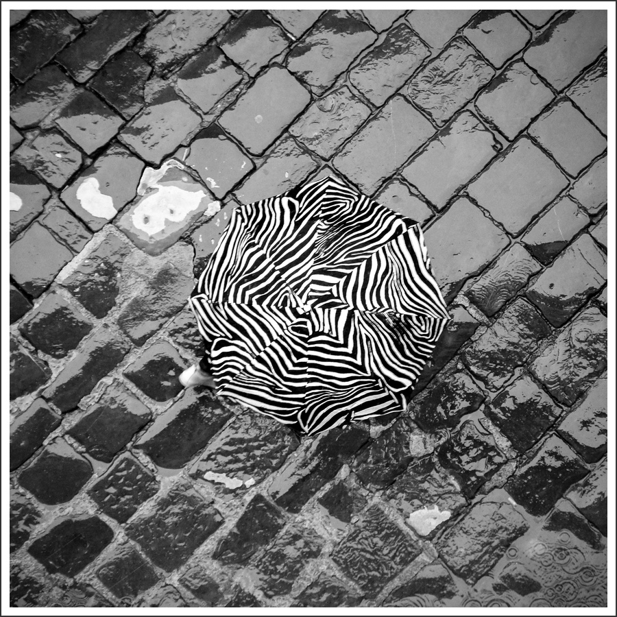 Ipnotico l'ombrello zebrato sulla pavimentazione bagnata e geometrica. Bella proposta, complimenti _________________ Marisa |