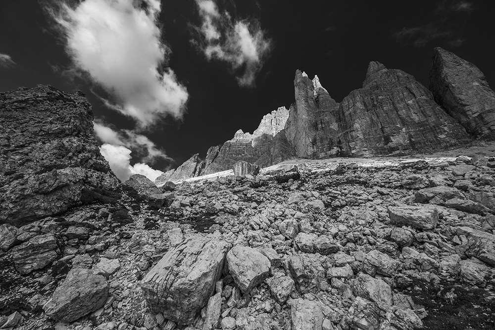 bella imm il bn sul primo piano troppo tendente al grigio così come le montagne a dx. dopo la conversione è sufficiente utilizzare il pennello scherma-brucia con una percentuale 2-3% e ottimizzare la scala di grigi.