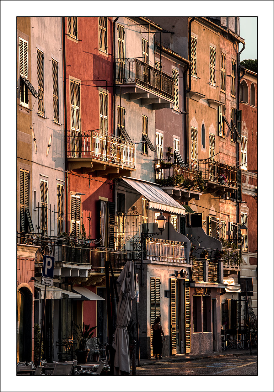 | Semplicemente il mio borgo ancora semi deserto nel momento in cui il sole, sorgendo dietro a Genova, ne inonda le case e gli smalti delle persiane ne riflettono la luce. |