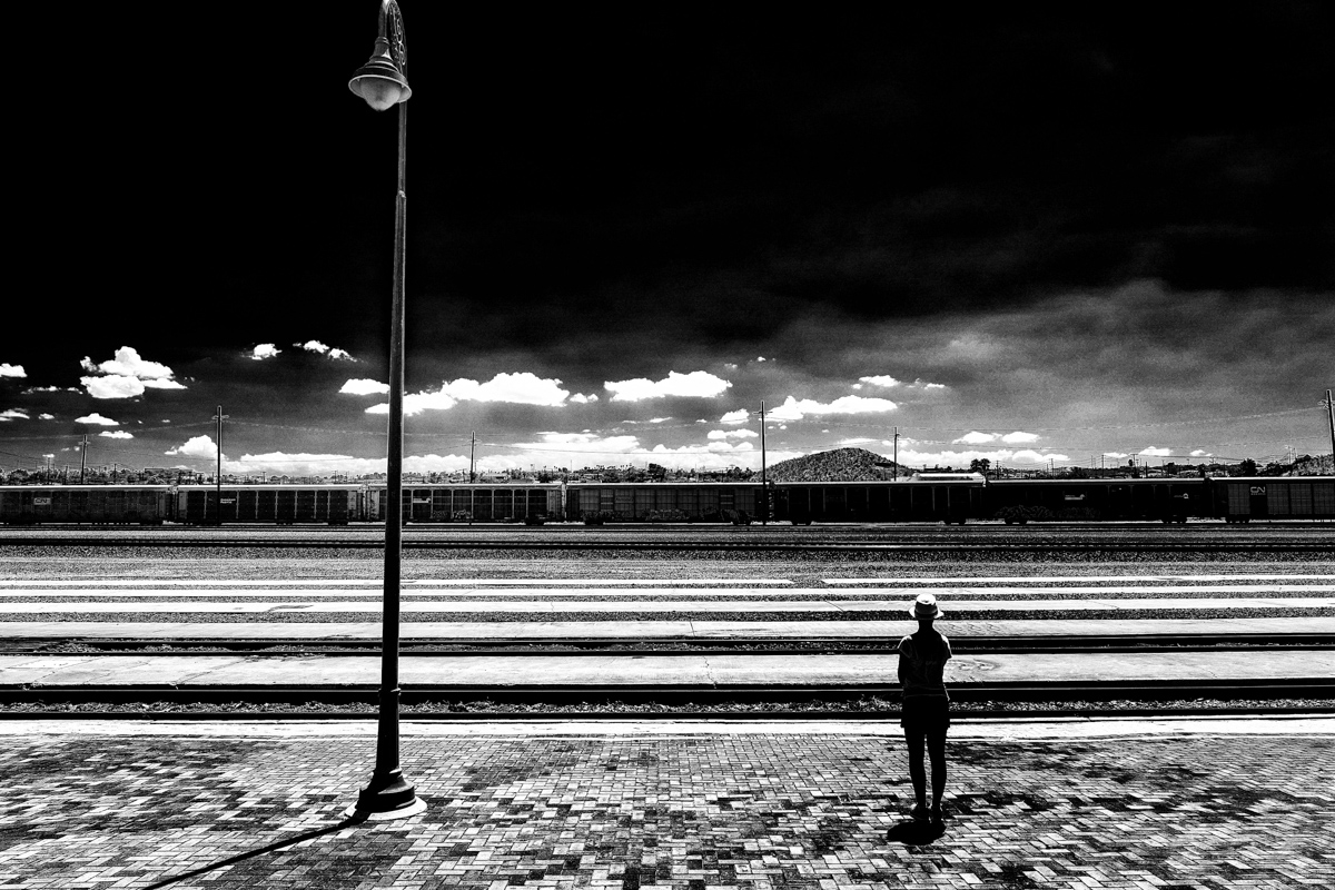Lampione pizzicato e storto facilmente correggibile, per cui la immagino "corretta" e mi verrebbe solo da capire se tutto quel nero nel cielo (per me troppo) sia stato frutto di un PP voluta. Mi resta insomma la curiosità di capire cosa ci fosse sotto tutto quel nero, perchè l'illuminazione del cielo/nuvole e corsie tra i binari mi lascia pensare ad un orario diurno (la luce del lampione è spenta!!).