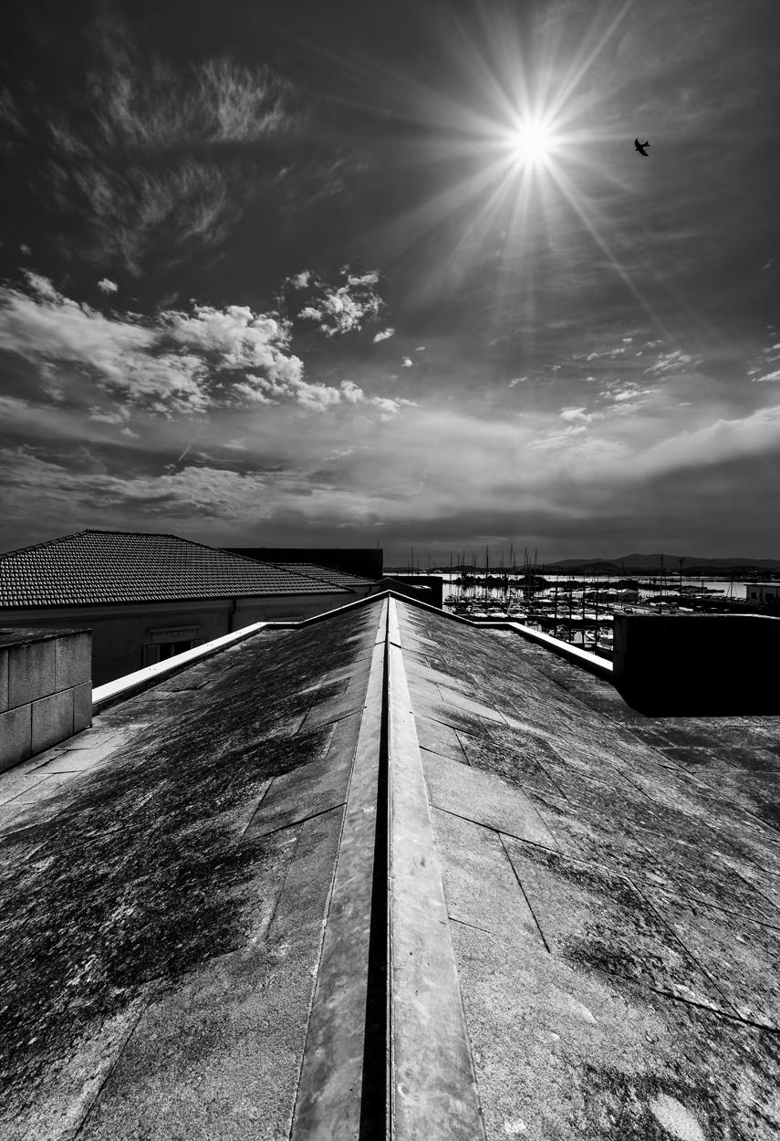 Un controluce gestito ottimamente, molto bella la visuale che correndo sul filo del tetto spazia per arrivare li dove c'è il mare...stratosferico il BN e il volatile un valore aggiunto...complimenti Giacomo Ok!