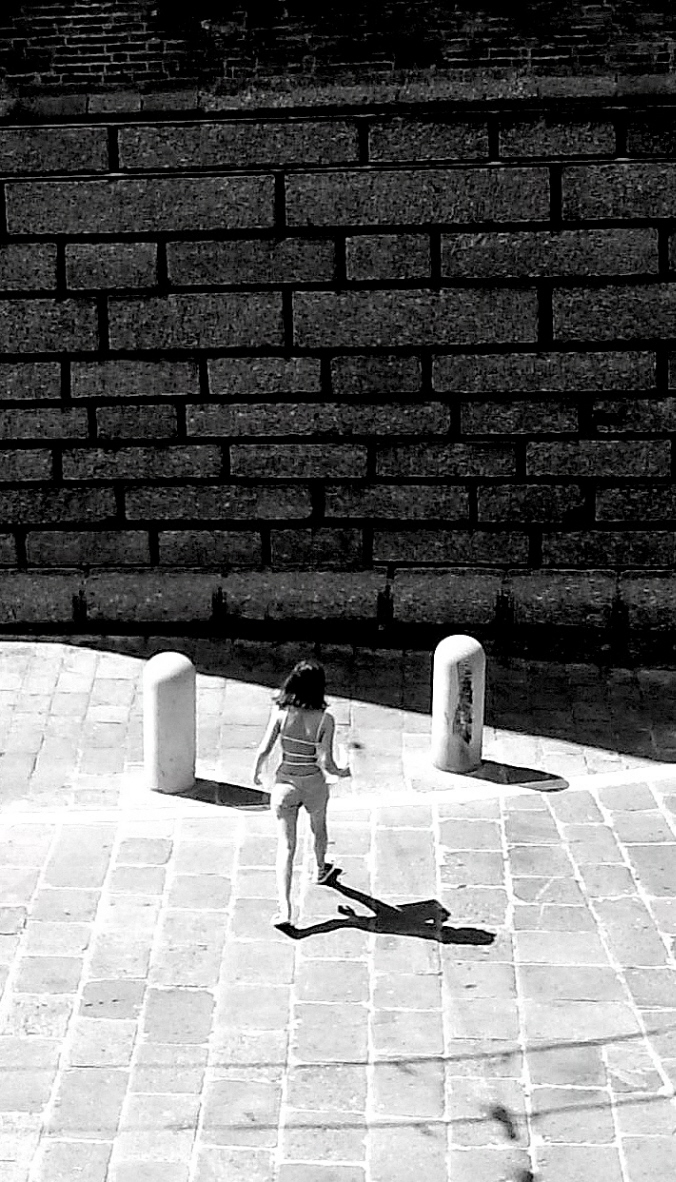 Il forte contrasto spezza in due l'immagine. "No wall" forse perchè la ragazza sembra sfidare il muro.