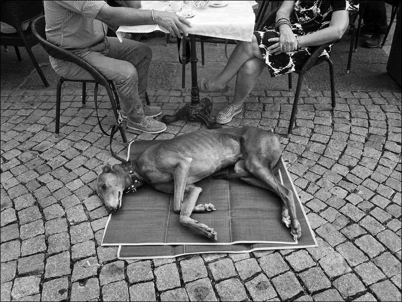 Molto bella la posa del cane,buono il bn,forse avrei tagliato in alto fin sotto le mani lasciando solo le gambe della coppia ed il cane.  _________________ Sergio Demitri https://www.flickr.com/photos/124946035@N02/ |