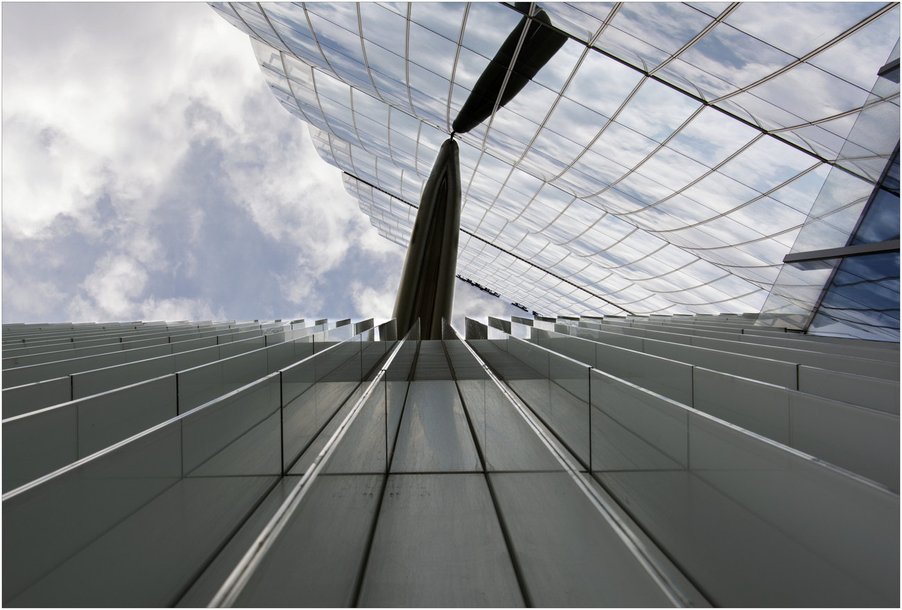 Avrei solo livellato le linee orizzontali della struttura in primo piano e curato meglio lo scontorno del cielo, che giustamente hai abbassato di luminosità: sul profilo frastagliato (sempre della stessa struttura di sopra) si notano delle parti di cielo più chiare.