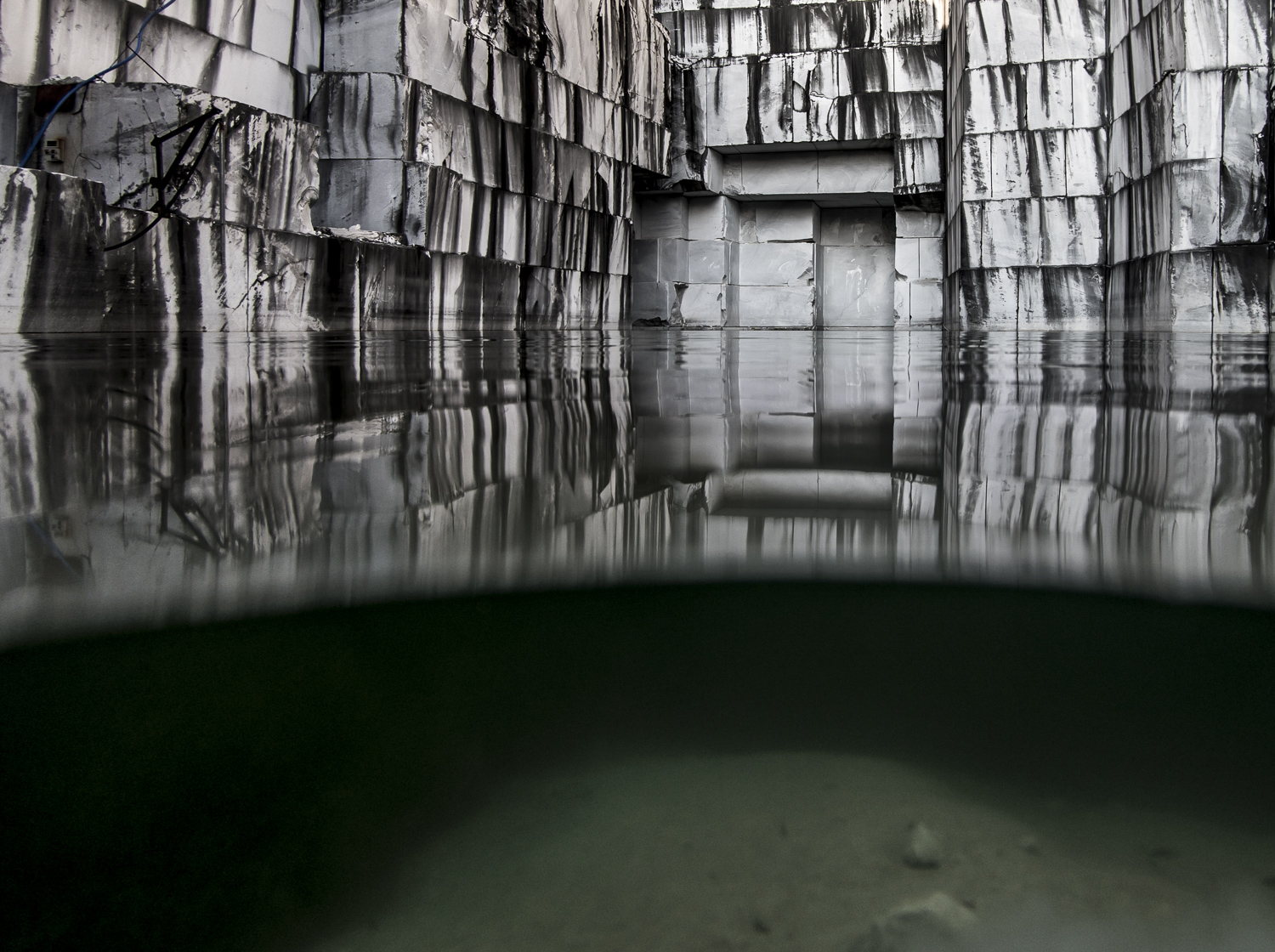 | Uno scatto parzialmente subacqueo di una cava di marmo abbandonata |