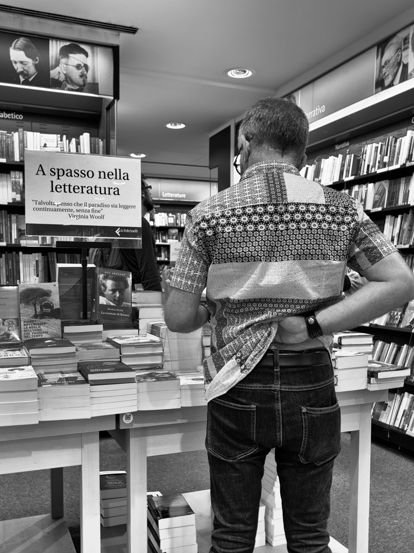 Trovo il bn particolarmente ben reso, e poi la letteratura... esser osservati da Joyce e Levi a spasso tra i libri mi piace molto. Pizzicato a destra , 'pizzicato' a leggere e pizzicato da te . Life piacevole