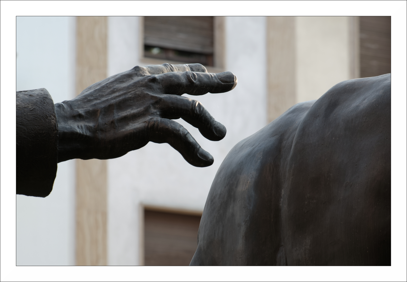 Ormai scatto solo in total manuale perfino la maf e qui semplicemente ho "visto" questo particolare ed entusiasmato ho adoperato i parametri dello scatto precedente. Dovevo aprire e staccare lo sfondo e soprattutto inquadrare meglio per far stagliare la mano almeno sulla parte chiara del muro dietro. Imperdonabile.