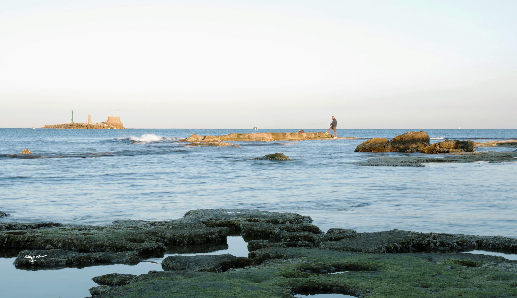 Ciao Arnaldo, è molto bella ma c'è fin troppa roba. Sarà che ormai il mio occhio amputa chirurgicamente e riduce all'osso ma già il primo piano era teatro di almeno una ventina di foto, idem lo scoglio a destra che il pescatore centrale che l'isoletta a sinistra. Qui c'era materiale per tirare fuori almeno una decina di foto diverse e più semplici