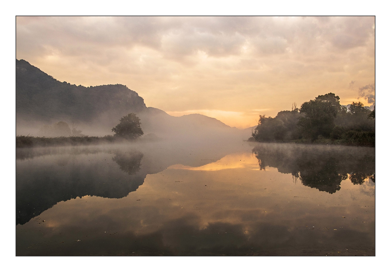 Molto piacevoli i colori,rispecchio,ombre e quella nebbiolina a far da cornice a questo scatto.