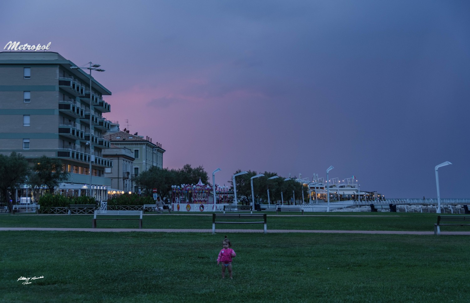 La piccola sembra quasi smarrita di fronte alla notte che incombe,anche le tonalità livide accentuano questo senso di sospensione.Un po' di rosa resiste ancora,ma per poco.Poi il buio.Ottima composizione e suggestiva immagine. Ok! Ciao Buona serata,Sergio. Smile