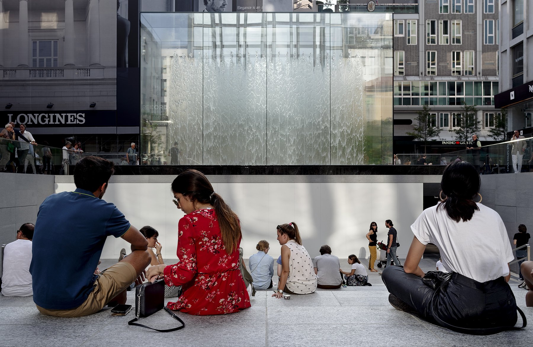 In tutto questo non è da meno il ruolo del contesto urbano sul livello superiore, con la particolarità della fontana "sotto vetro" inserita con rigore nella composizione complessiva.