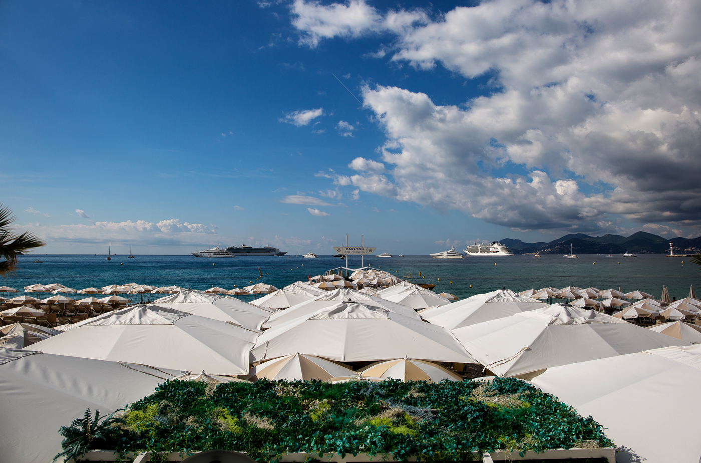 Bellissimo ed originale punto di ripresa con questi teli di ombrelloni che gareggiano con le nuvole in una equa distribuzione tra cielo e terra.Splendidi i colori e grande la profondità. Ciao