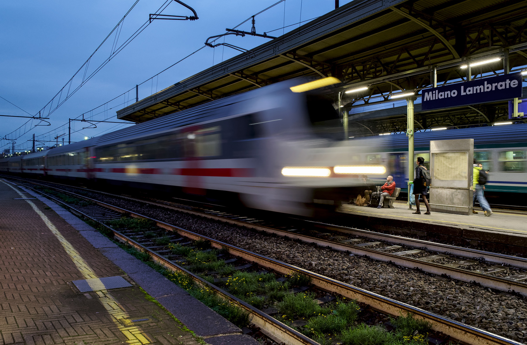 ciao Giacomo, un bellissimo scatto, tecnicamente perfetta un mix di velocità e al tempo stesso di staticità, vedi il cartello e i pendolari seduti, bellissime le cromie e la nitidezza.