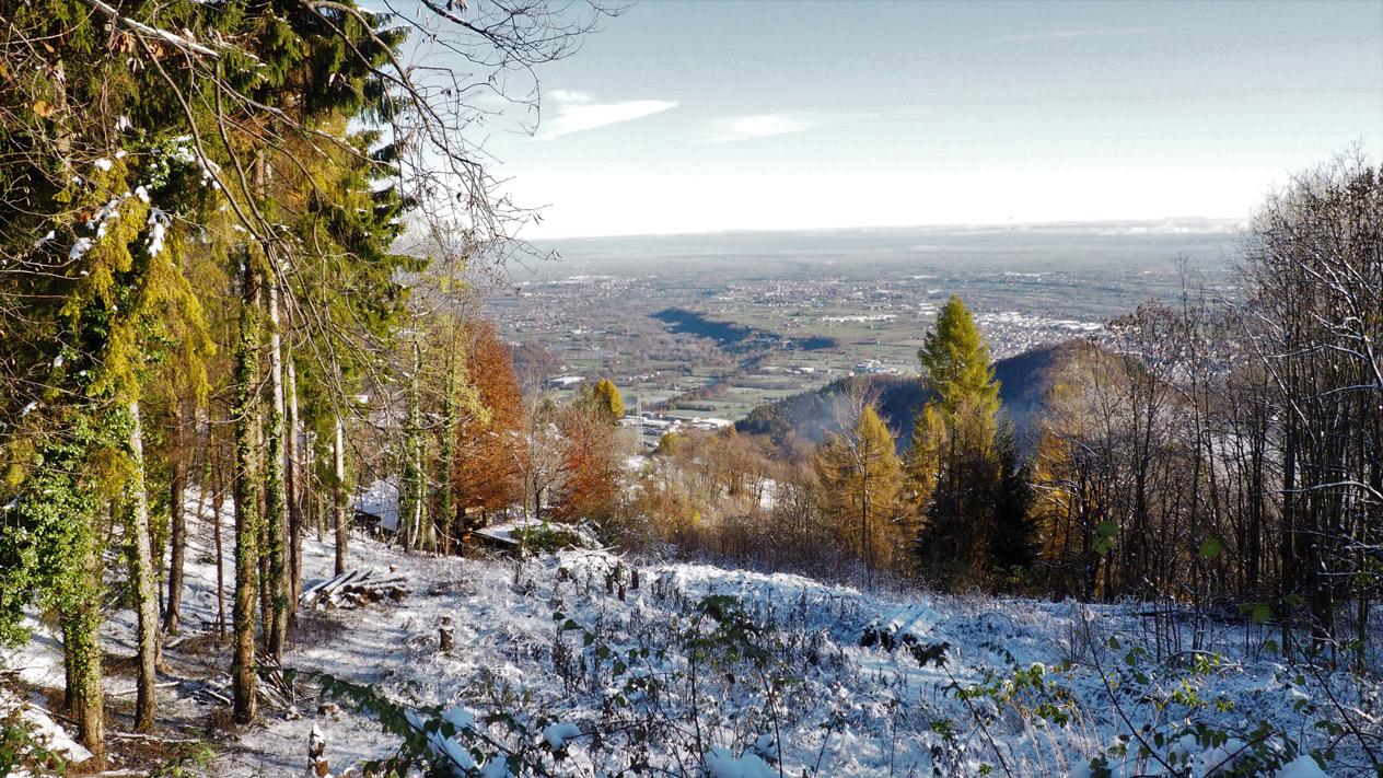 Ciao Ignazio, piacevole questa vista verso valle con la prima neve...noto però una complessiva poca nitidezza e artefatti sul cielo...pende a sx.