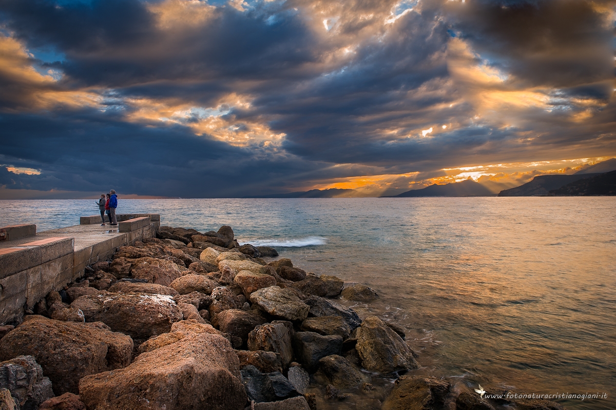 La foto è complessivamente piacevole, ma non mi convincono molto le persone che guardano verso l'esterno del frame, oltre alla PP un po' troppo spinta nella saturazione e con delle chiazze di luce poco realistiche sugli scogli.