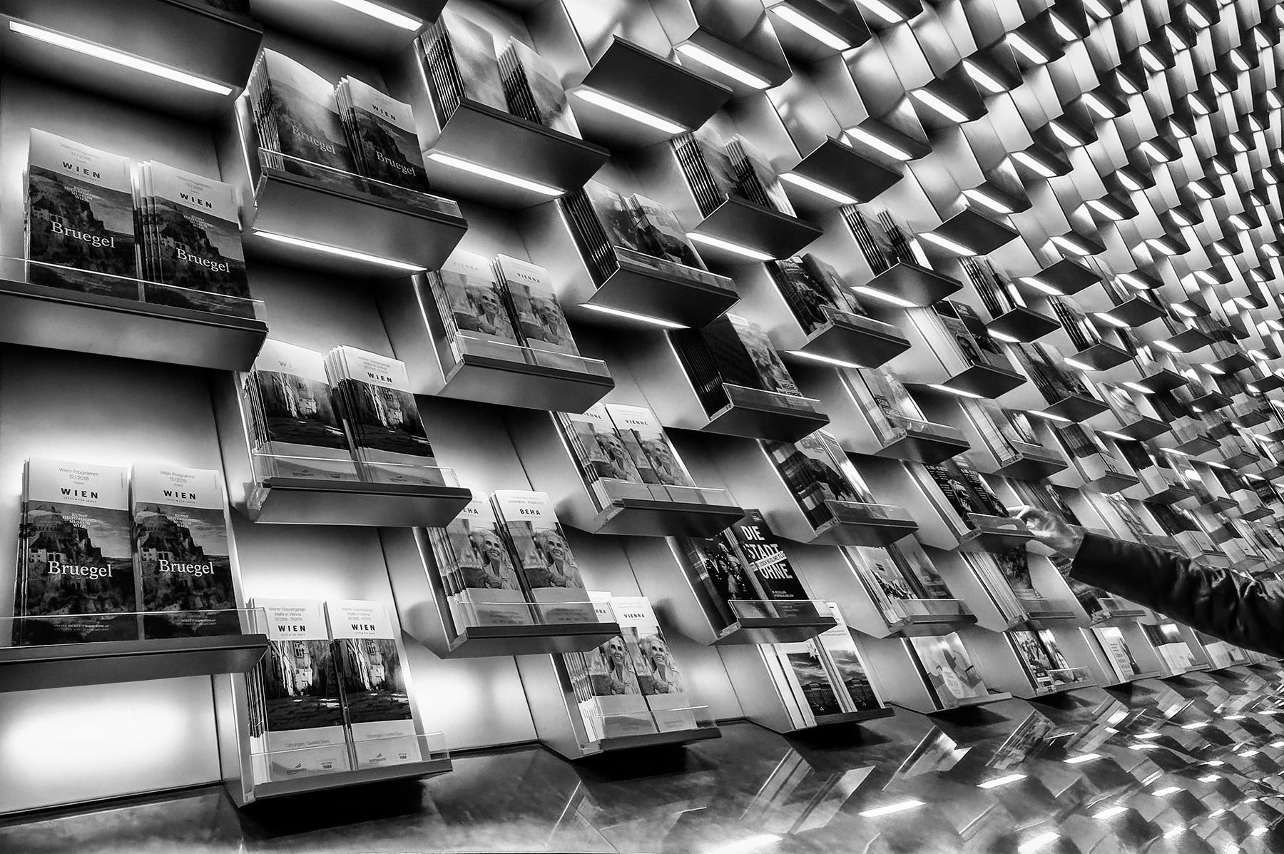| vittorione ha scritto: | La foto è molto bella, giocata su un bel grafismo, trattata con un buon BN, con il felice inserimento della mano tesa verso il fantascientifico espositore.