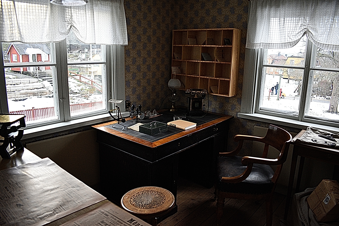 L'ambiente chiuso risalta con la luce dalle due finestre, aperte su grdevoli quadri invernali.