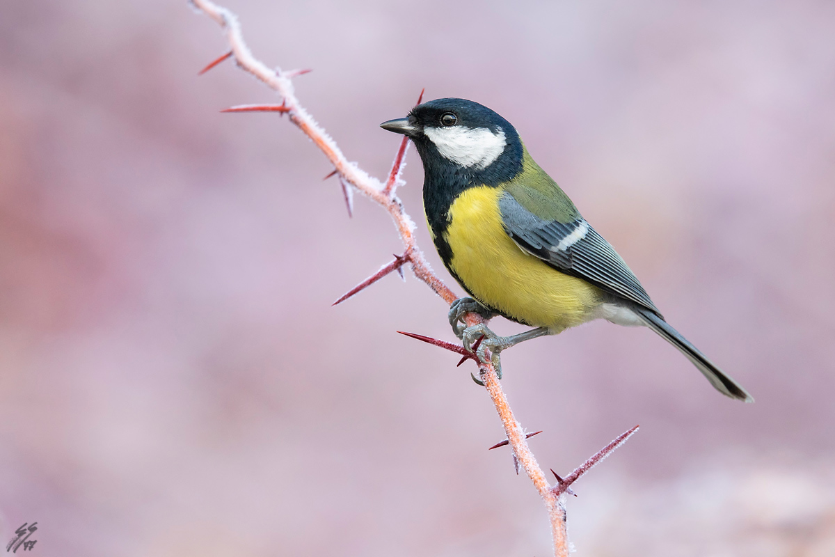 Bella cincia e stupendo lo sfondo delicato e il posatoio spinoso e gelato....il bianco della guancia mi pare un po impastato.