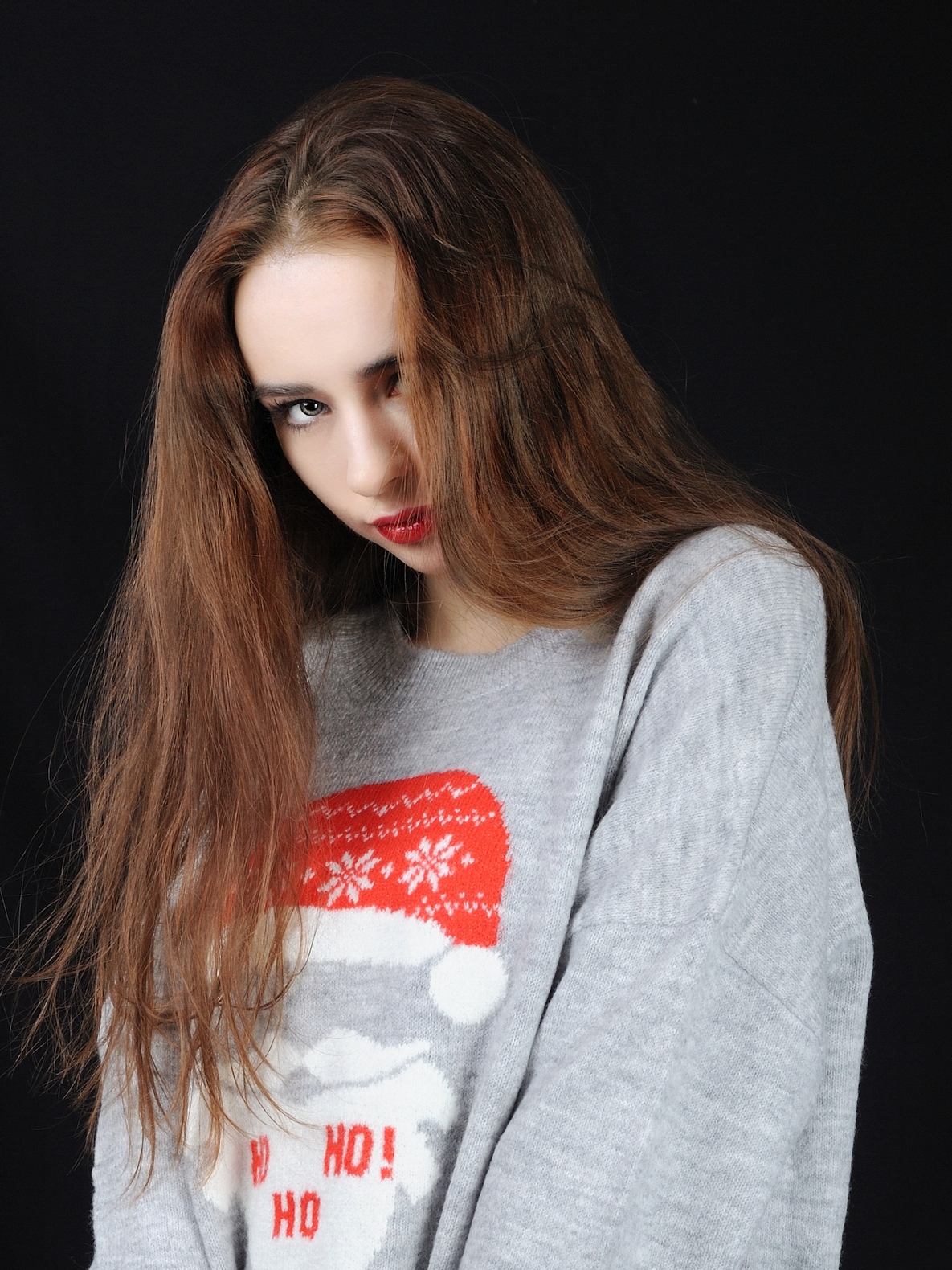 Io mi trovo sempre nel dubbio di quando una foto debba essere di studio o di ritratto. E' indubbio che lo scatto sia stato eseguito in studio con impostazione delle luci e tutti i canoni da studio però in questo caso avevo chiesto a Gabriela di farmi un'espressione di timidezza e di imbarazzo (spesso chiedo alle ragazze a voce di farmi uno sguardo di un certo tipo: sensuale, allegro, timido, incaz... oppure dico "odiami", "amami", ecc.) e Gabriela ha risposto in questo modo: testa bassa reclinata, seminascosta dai capelli, spalle curve come a richiudersi in se stessa in senso di protezione. E' chiaro che se la vediamo come una posa da modella potrebbe risultare goffa, io invece la trovo molto tenera.
