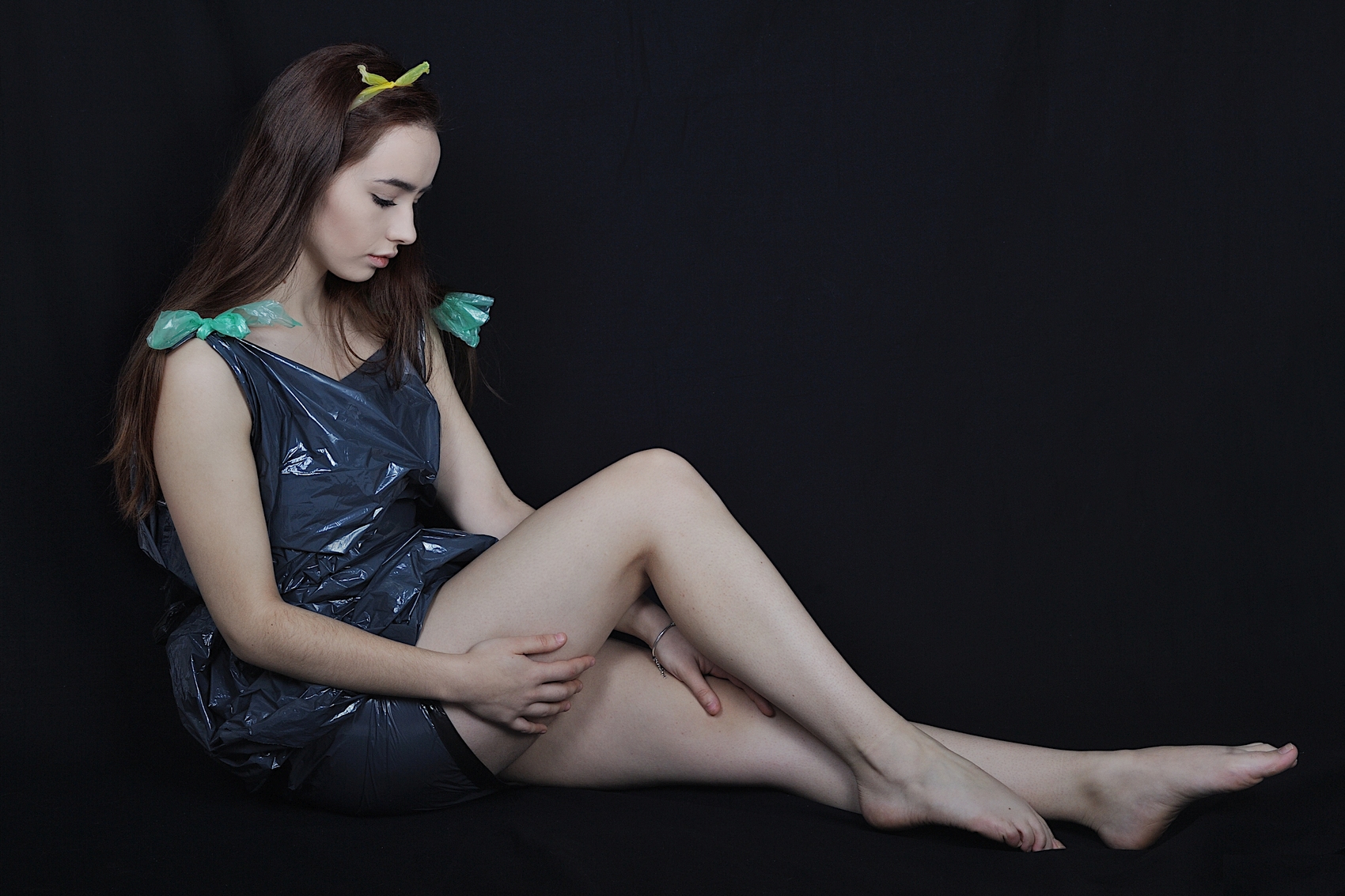 Mi preme sottolineare che questa foto appartiene alla stessa sessione della foto "la bambola" dove ho scattato alcune foto a Gabriela con vestiti ottenuti con sacchi e sacchetti della spazzatura.