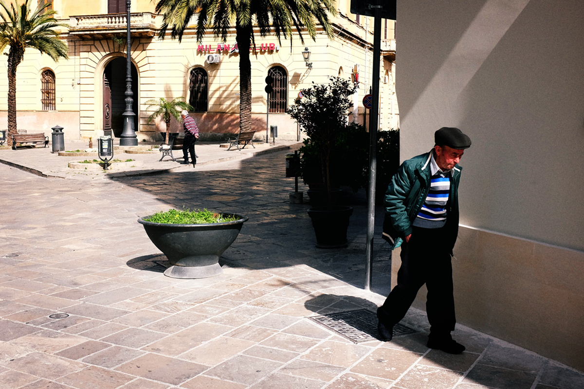 Al di là delle interpretazioni lo scatto trasuda un'aria di Sud - la strada inondata dal sole abbagliante, palme, coppole e viavai sfaccendato - che sembra di star a "leggere" Brancati, o Sciascia.