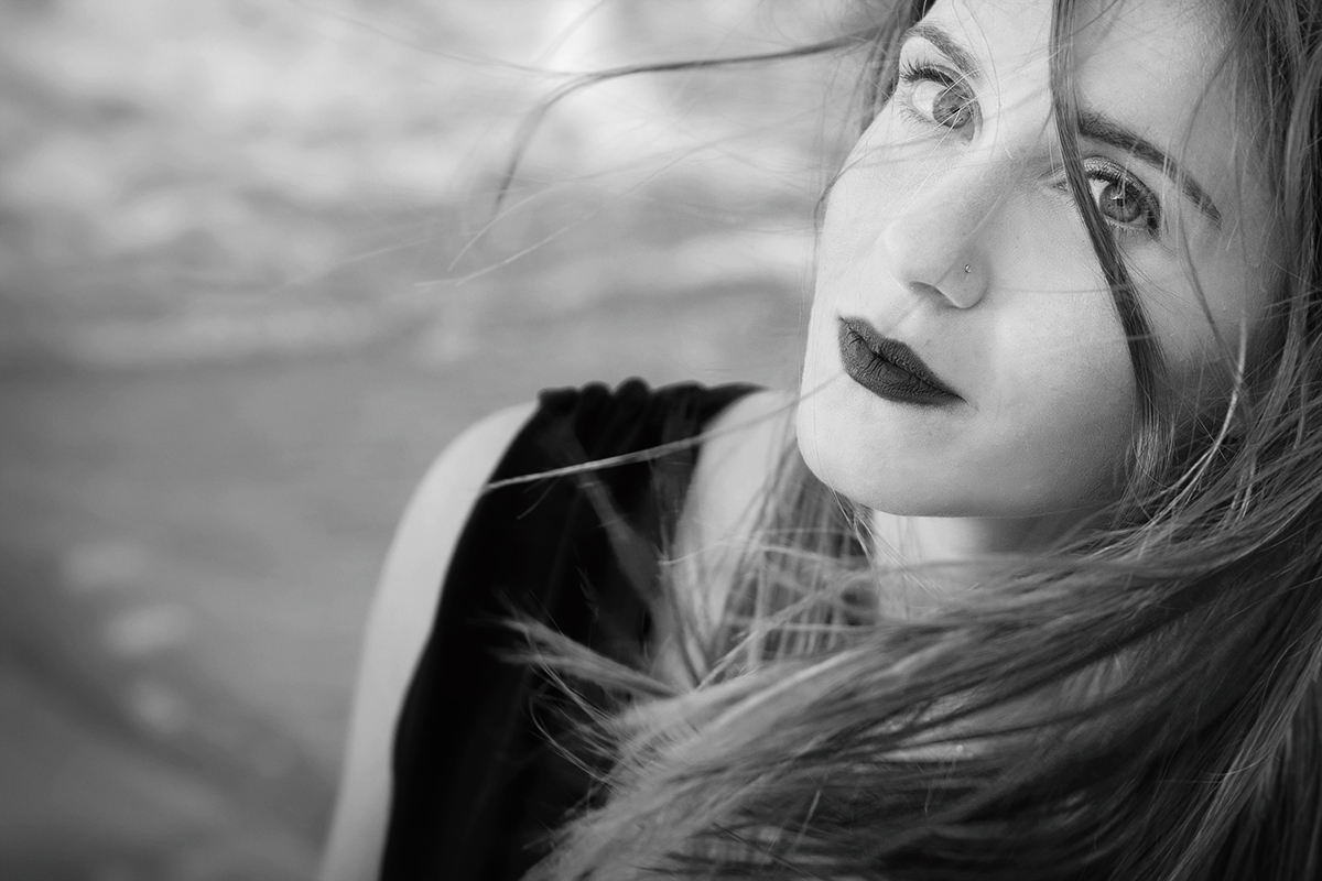 lo sguardo ed i capelli al vento fanno il resto, ottimo b/n.
