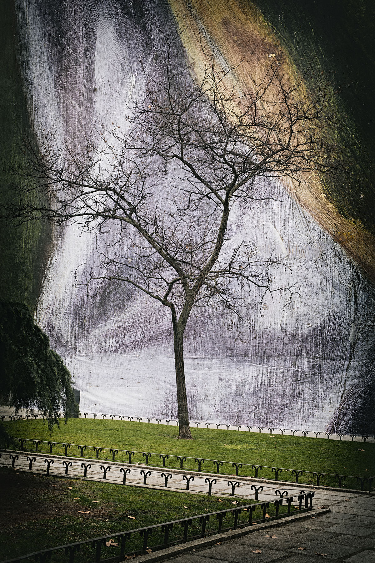 Piace molto anche a me questa foto, la scheletrica figura dell'albero che si staglia si un muro dipinto ..non saprei cosa ...ma il tutto ripeto mi piace molto