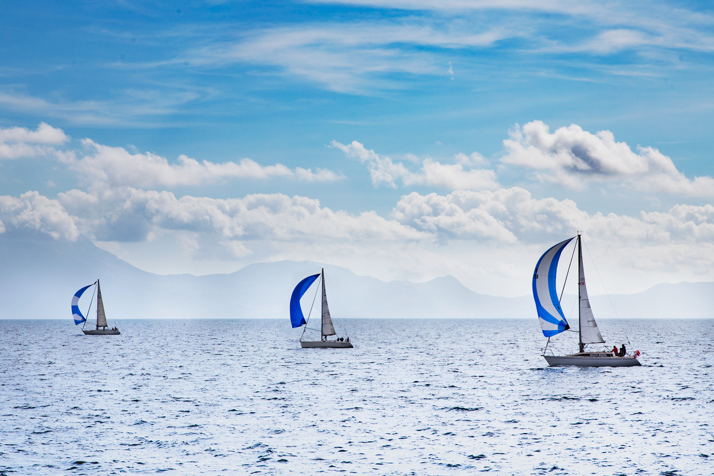 Molto molto bene, un bel gioco di proporzioni e distanze che rendono lo scatto interessante.....e le nuvole sembrano "spingere" e gonfiare questi spinnaker!