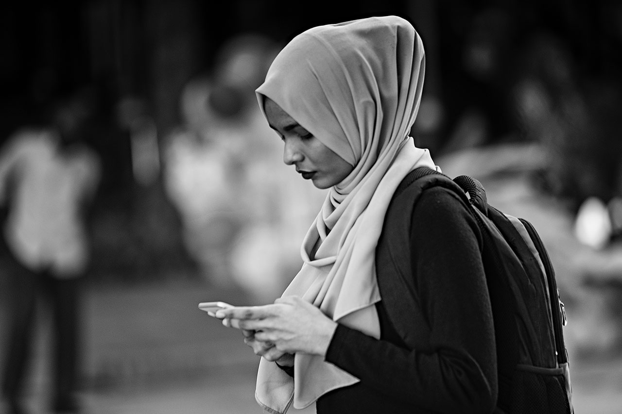 Forse non è corretto inserirla nella sezione ritratti...mi piaceva la contrapposizione della tradizione del velo con la modernità dello smartphone e dello zainetto...