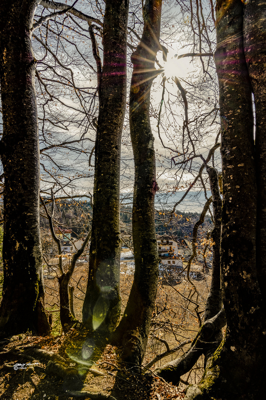 un piacevole controluce, la corteccia con le sue muffe gialle crea un piacevole gioco di colore Ciao