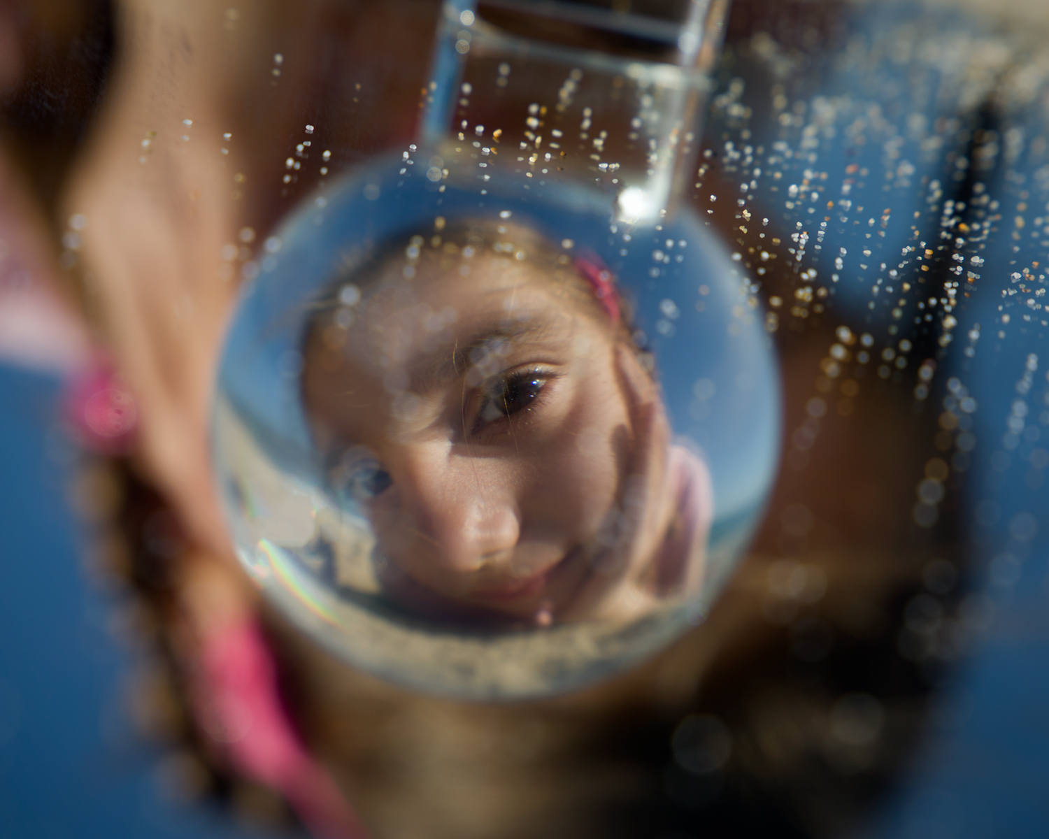 Mentre preparavo l'inquadratura per un'altra foto la bimba, naturalmente attratta da quello che facevo e intuendo cosa stessi per fotografare, si è piazzata davanti alla sfera e ha improvvisato questa espressione, poi è scappata.