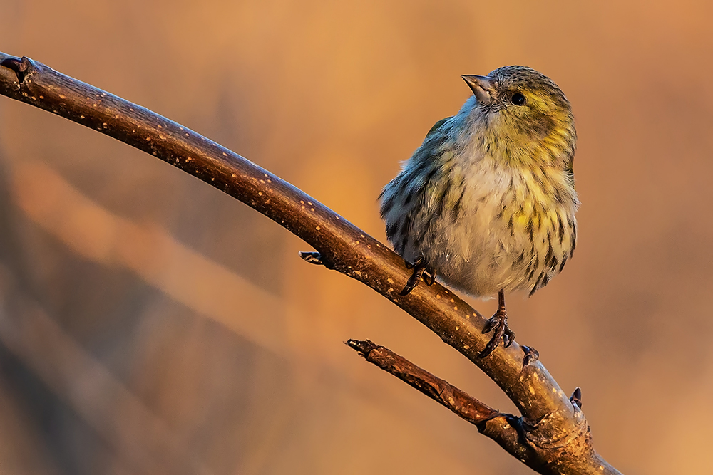 una buona immagine, da correggere in post la dominante ciano nelle zone d'ombra sia del lucherino che del posatoio.