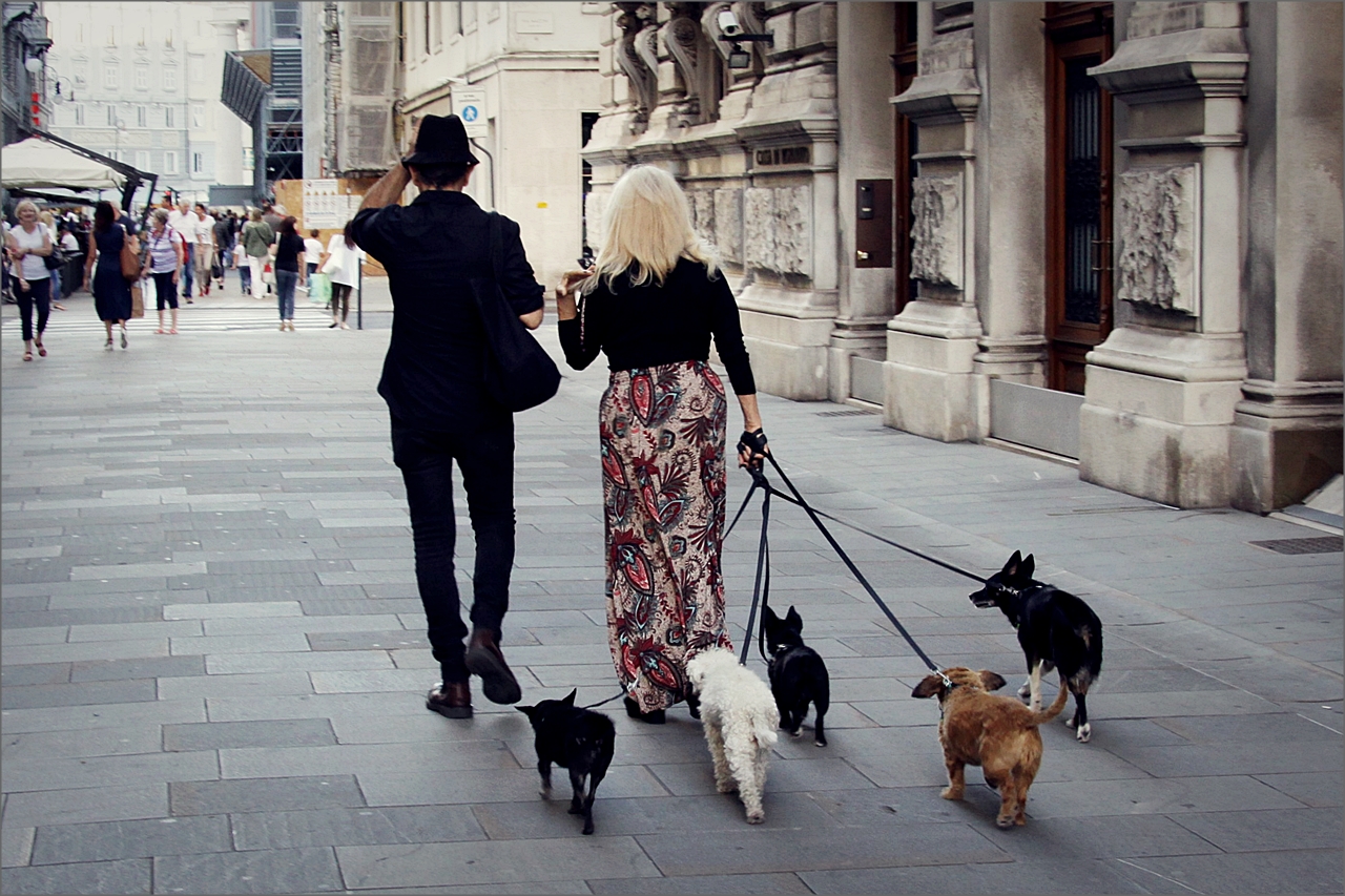 Bellissima, girare con ben 5 cani per città non è cosa da tutti.
