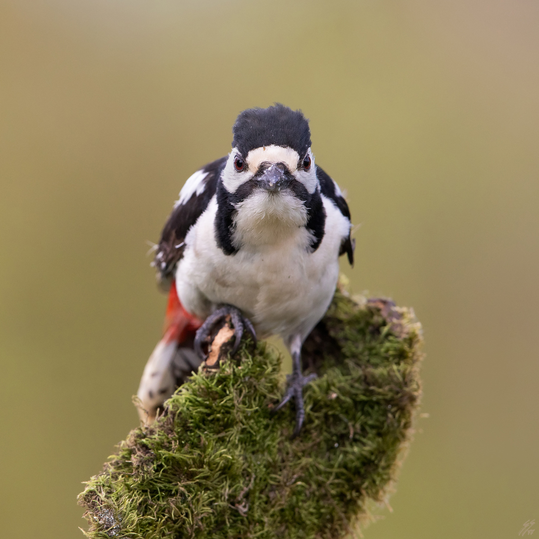 ripresa frontale decisamente inusuale per un picchio