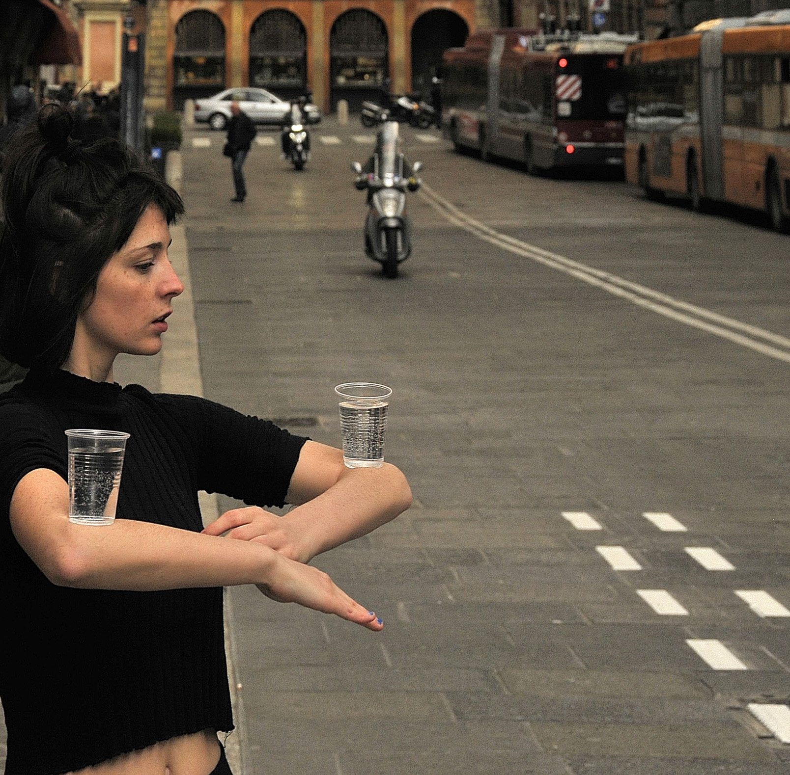 se non è una artista di strada, direi che gira gente strana a Bologna.