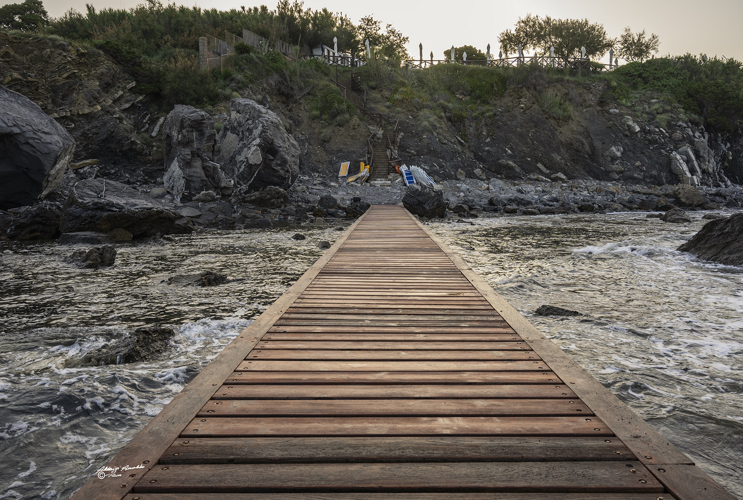 Ciao Sergio o percorso la passerella fino alla fine, ed o visto che la parte alta mi dava un ottima composizione con la scaletta ripida e tortuosa accompagnata dai colori dei lettini..ed i grandi scogli.. è mancato il raggi del sole per rendere ancora più migliore questo scatto..ma ci ritornerò.