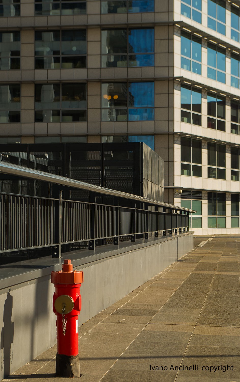 Personalmente avrei chiuso di più il diaframma per avere tutto a fuoco, o in alternativa aperto maggiormente per concentrare l'attenzione sul rosso dell'idrante in primo piano.