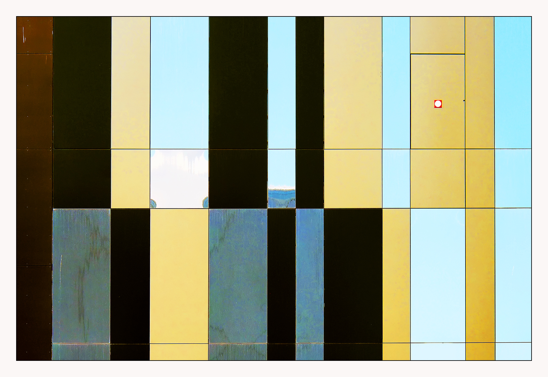 Sempre molto piacevole, Francesco, la tua ricerca tra Uffici, Condomini e facciate dai variopinti moduli geometrici . La composizione è perfetta,la parte sinistra, dove predominano i colori scuri, sembrerebbe 'appesantire' (sbilanciare)rispetto alla leggerezza di dx ma infine mi piace . Interessante la contrapposizione tra la parte superiore pulitissima (c'è una porta?) e quella inferiore.
