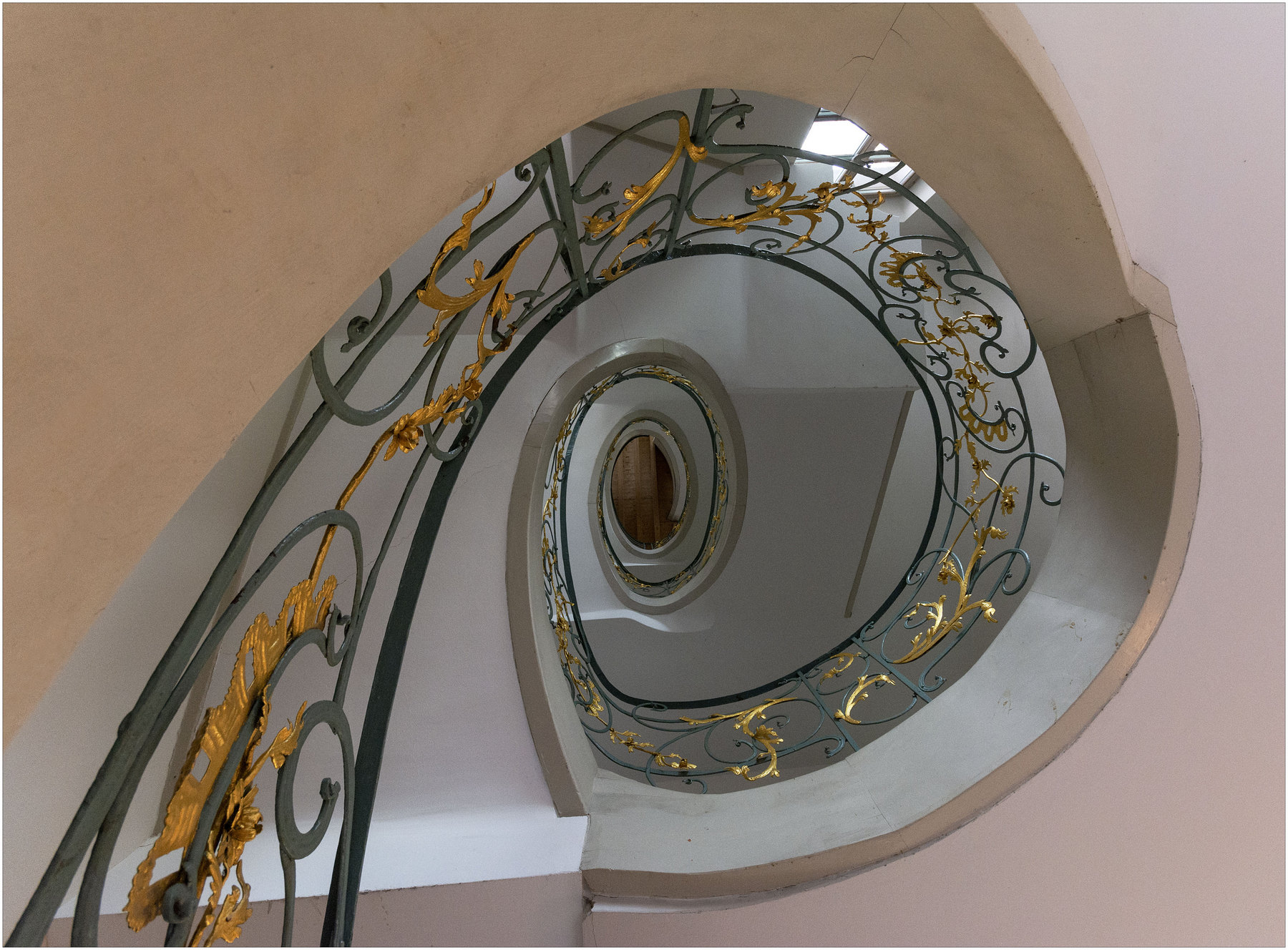Che strana! Parte tondeggiante e finisce ovale?? Composizione difficile che inevitabilmente appare un po' squilibrata nella distribuzione dei volumi. La foto in se mi piace, bella nitida, profonda ed impreziosita dai ghirigori dorati della ringhiera Smile