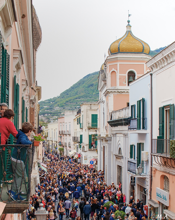 Ogni anno a Pasqua nel mio paese (Forio d'Ischia) si svolge una sacra rappresentazione che si ripete da oltre 4 secoli, incentrata sul momento della risurrezione di Gesù, in cui l'angelo corre per annunciare la resurrezione alla Madonna, facendosi spazio tra migliaia di persone tra turisti e paesani, e grazie a quest'annuncio alla fine le statue di San Giovanni e la Madonna si incontrano con quella di Gesù risorto. Il tutto è narrato dal parroco della mia parrocchia da un balcone e la manifestazione si svolge tra "regina coeli" cantati a squarciagola, e coloro che devono far correre la statua che devono farsi spazio tra la calca che per guardare tende a riversarsi in strada, il tutto tra fede e folklore.