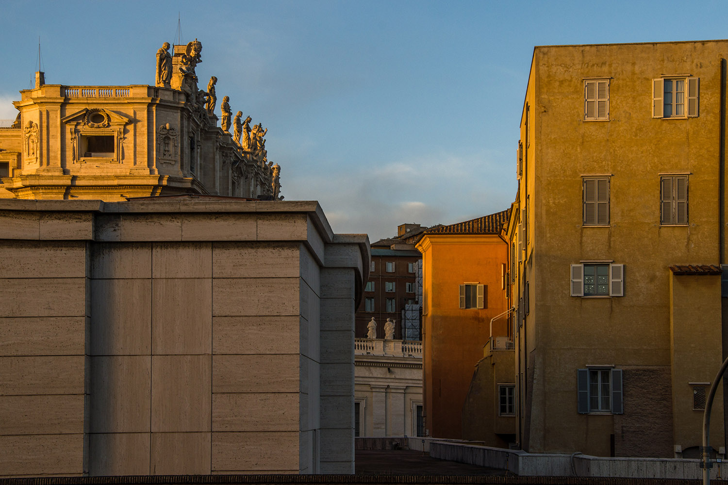 Forse non è proprio precisa ma mi aveva colpito la luce calda del tramonto che illuminava i palazzi e le statue di Piazza S. Pietro, la luce invernale di Roma