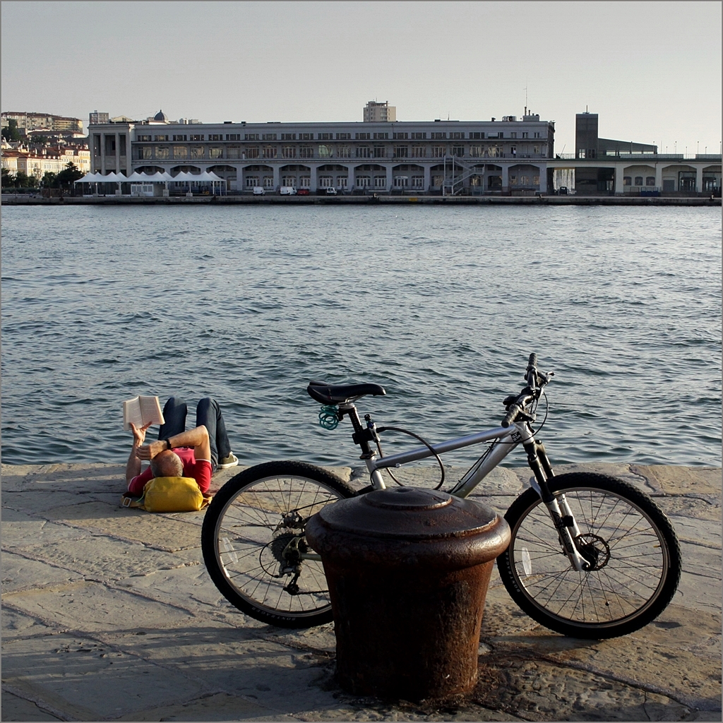 Piacevole ripresa, tutto intento a leggere..incurante della bicicletta..mi piace come proposta..