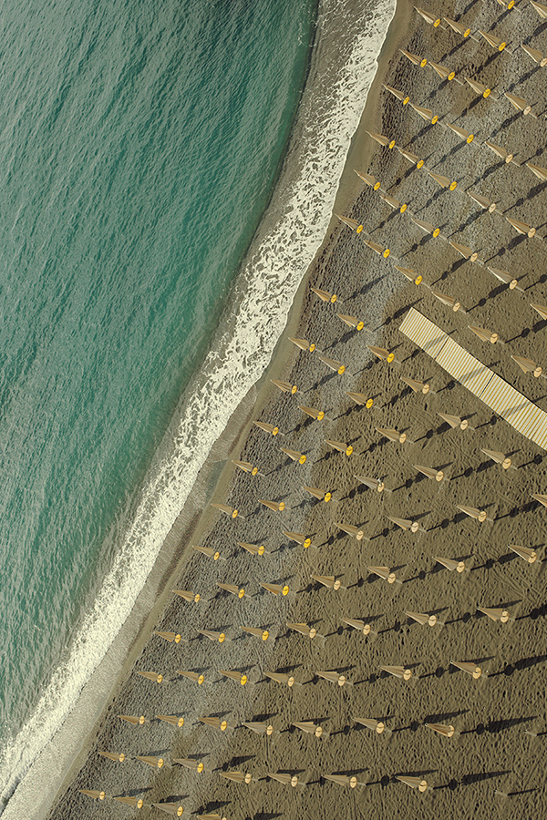 Bellissima la trama geometrica che ombrelloni e ombre disegnano sulla spiaggia ,piccole minuscole frecce ad indicarci la via del mare... quezta diagonale schiumosa che spezza l'ordine e cambia tutto.. colori e movimento. Un immagine dove la composizione e il pdr fanno la differenza. Ben vista Francesco,bravo..  _________________