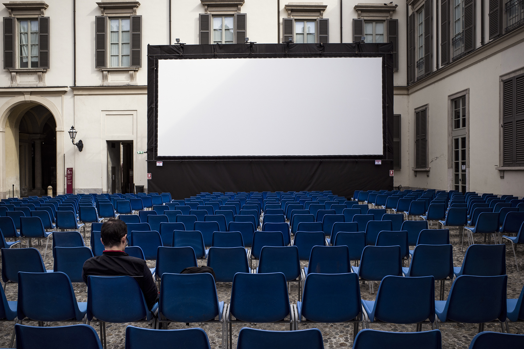 In ogni caso per me è da rifilare sulla parte bassa levando via tutta la prima fila di sedie tagliate e alzare i toni bassi per dare più vivacità all'azzurro delle sedie.