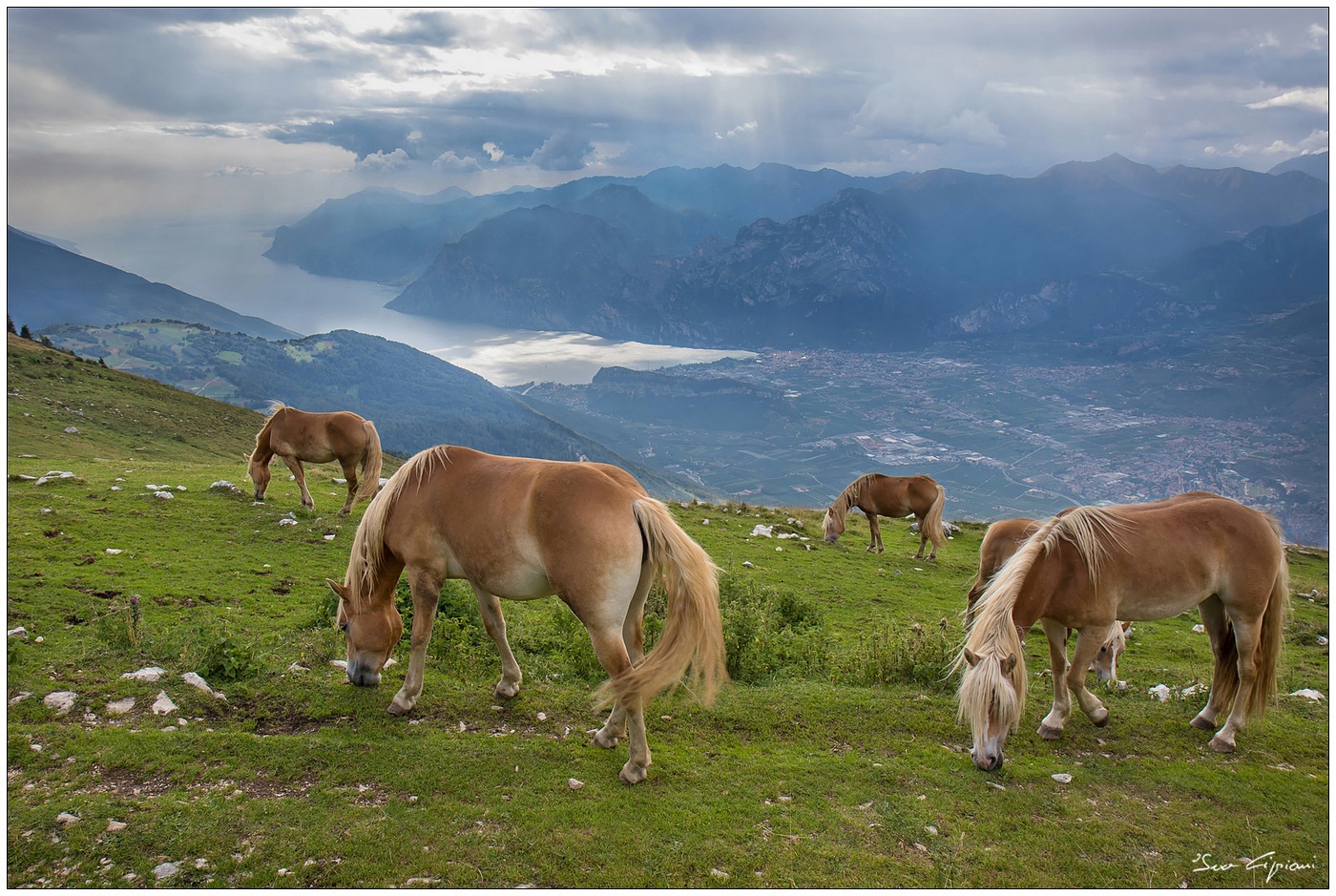 Prima o poi mi ci dovrai portare su questa altura....al di là del fascino degli equini vi è una meravigliosa panoramica sul garda trentino e bresciano...fantastico
